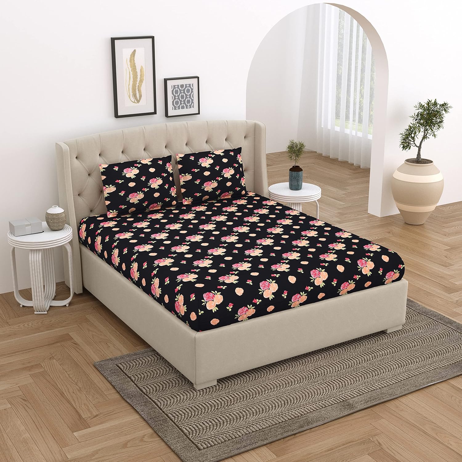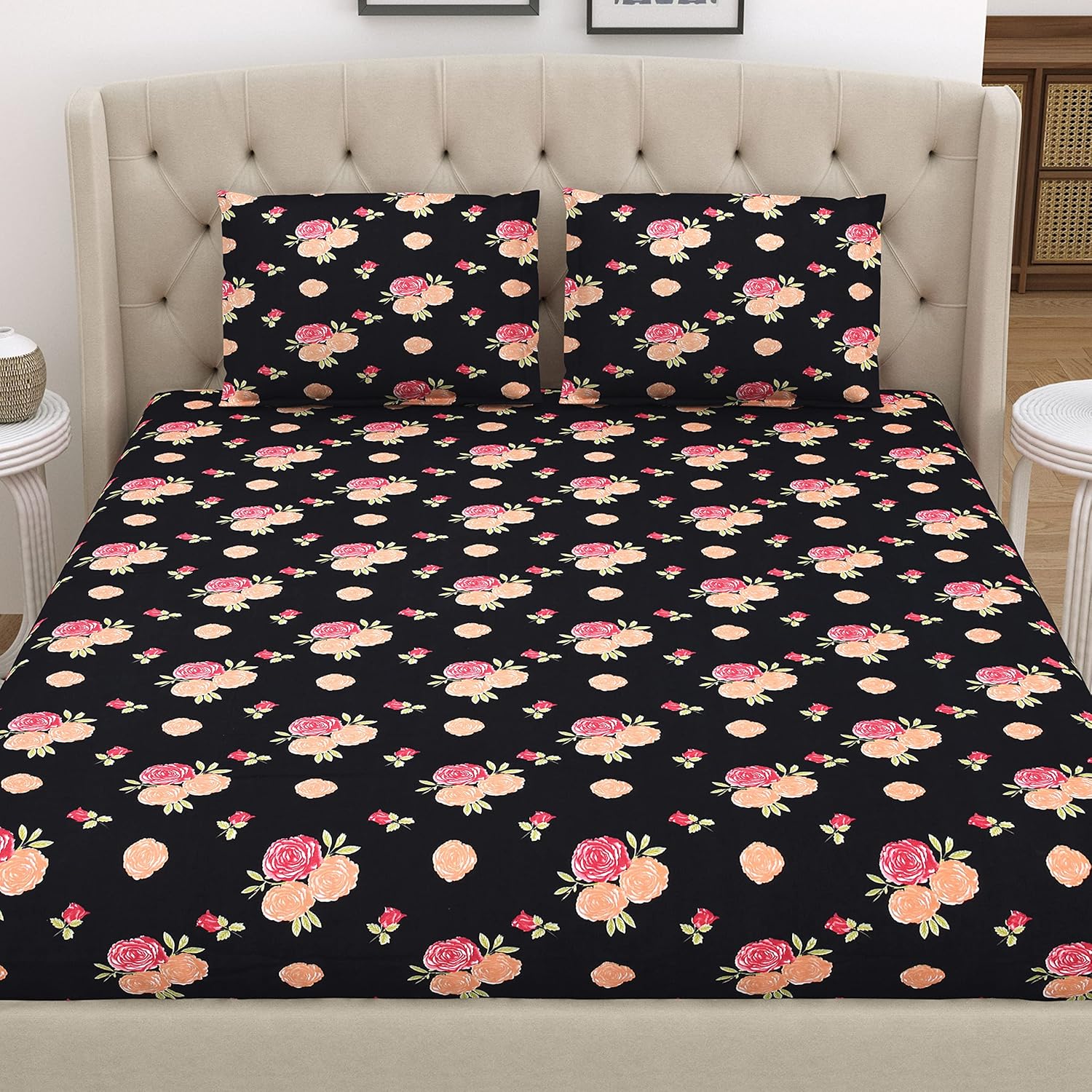 🛏️Premium Floral Black Cotton Bedsheet King Size with 2 Free Pillow Covers🌸@Just Rs. 399/-